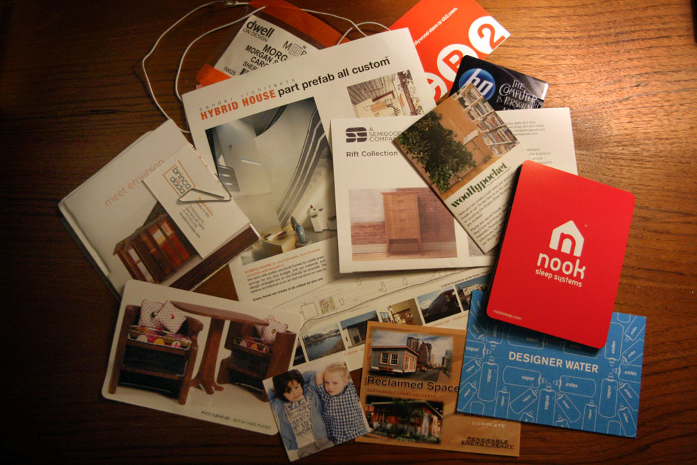 That is approximately 1/3 of the pile of crap I brought home from Dwell on Design to sort through and eventually, in some form or another, write about.