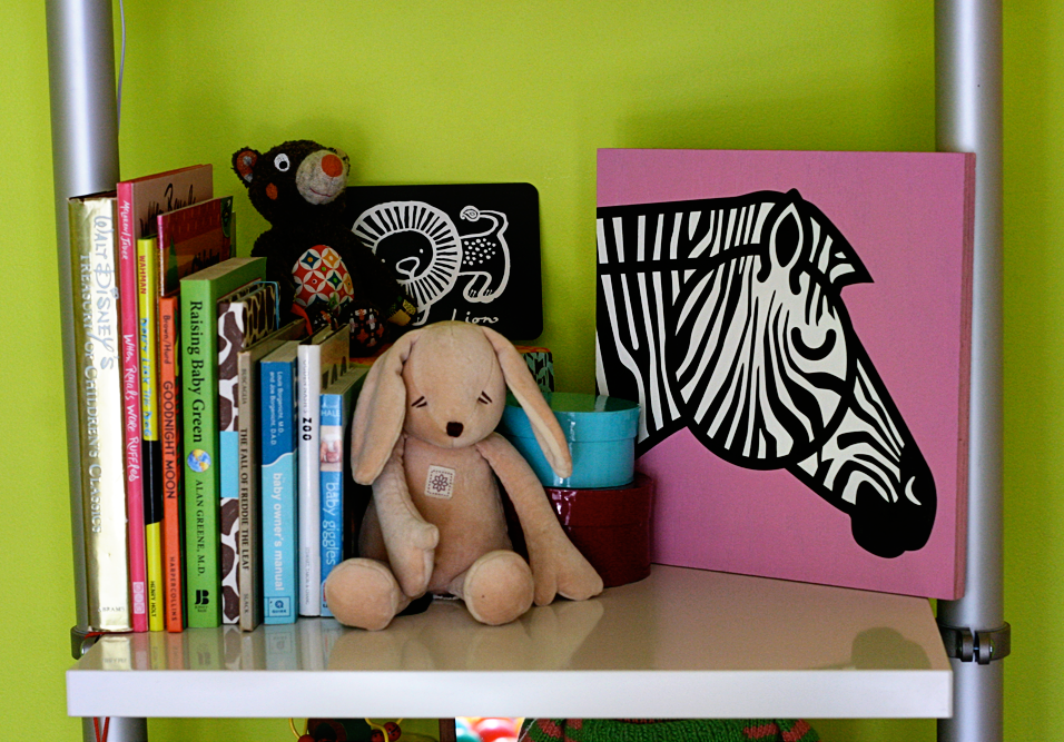 Anyway – I don’t have my dreamy Gregg Deal original yet, but do you know what I DO have? The very first ever Mod Tots Zebra, by none other than Gregg Deal himself. (See, Gregg has this modern family portraiture business called Modern Bird that he runs with his wife Megan and since the work they do is so freaking phenomenal, on the ONE YEAR ANNIVERSARY of Modern Bird’s launch, they gave it a little sister (or brother?) in Mod Tots, a line of nursery artwork which includes cupcakes and robots and…that pretty pink framed Zebra up there that Delilah picked out all by her little self.