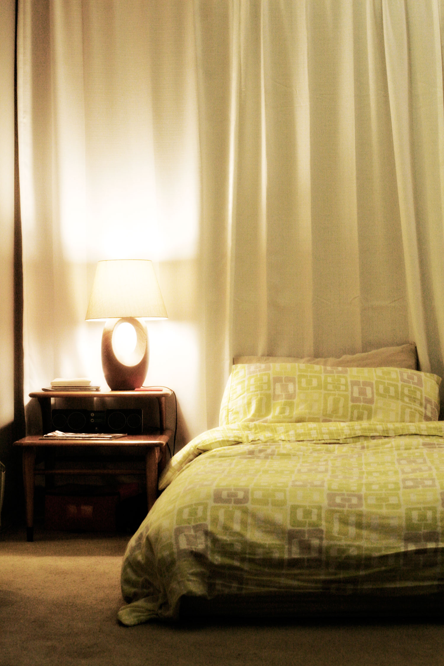 Finally. A little corner of my bedroom. The Zen is beginning to emerge. We’ve wrangled the closet monster, the guitars are downstairs where they belong, and we are beginning to have a bedroom that actually feels like a sanctuary. It’s still a major work in progress, but as I caught a glimpse of my welcoming little corner of last night, I thought “wow, it’s really starting to come together” and I wanted to share it with you.