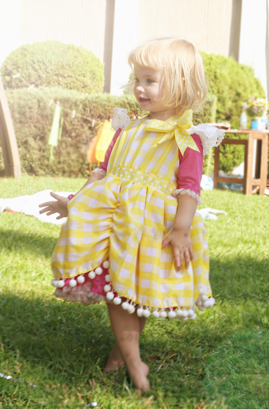 [That is the Lalaloopsy Crumbs Dress that Delilah got for her birthday. She is obsessed with it, only she thinks it is the dress Belle wore in Beauty And The Beast. Last night, outfitted in her new favorite frock, fancy shoes, and a gold purse, she announced she was going to the store. When she “returned” the following conversation took place.]
